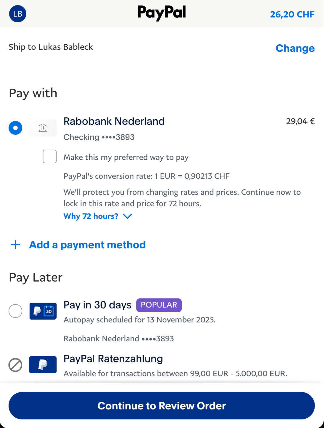 Durch den PayPal Express Checkout werden effektiv die Angabe der Adressdaten, sowie die Auswahl der Zahlungsmethode im Checkout übersprungen.